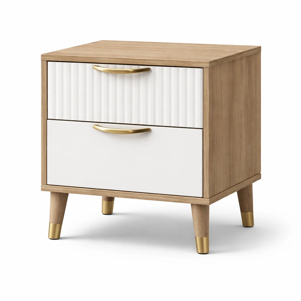 Mesita de noche de madera con dos cajones